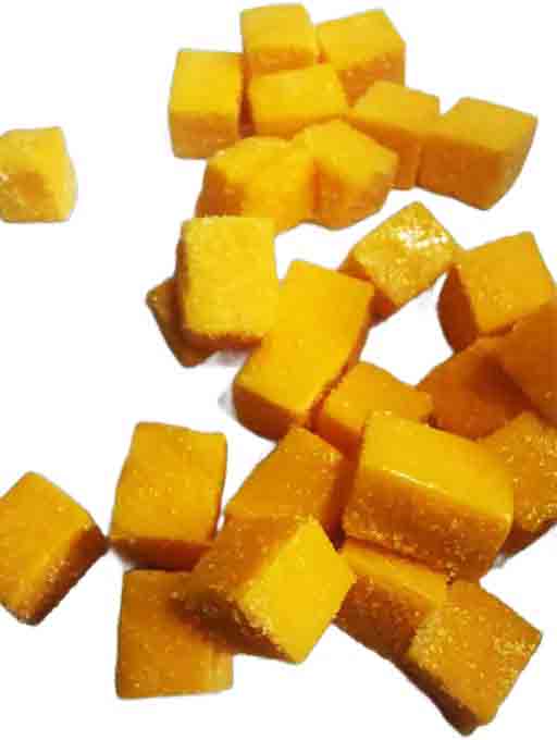 | Fruit puree pieces are obtained by mashing the fruits, drying them, and cutting them in different sizes according to customer preferences. |